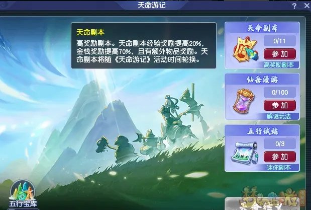 凡是参与天命副本的小伙伴都可有机会遇见生死簿残册、界外之灵和齐天大圣残影等三种游记任务,这三种游记任务均为随机出现,完成后可以获得10点五行之力。
