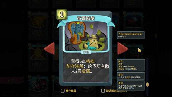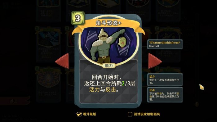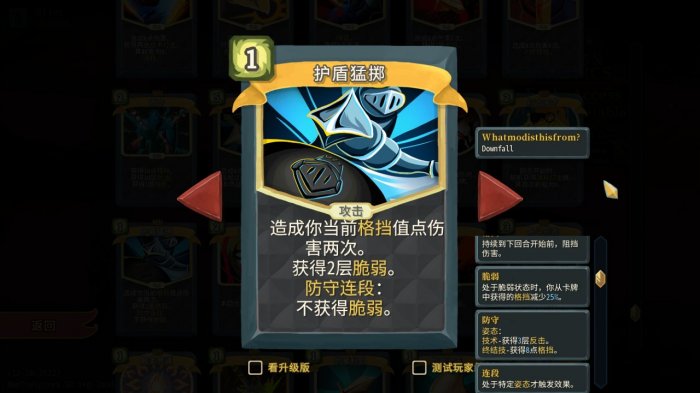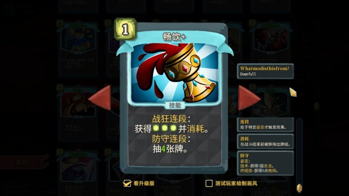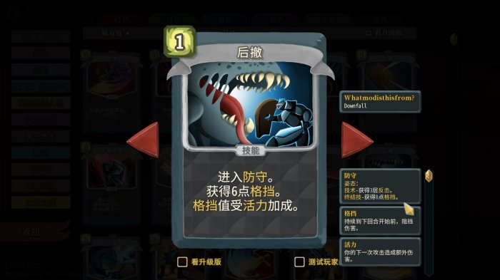 正如介绍防守端核心卡牌时所说,【后撤】受活力加成,在战狂姿态下,打出【后撤】、【防御】等技能牌会增加活力,而【后撤】的格挡也会随活力增加而增加,这种良性循环使得弟勇能够无压力叠甲叠活力。而这只需要一张白卡!打前半层就有大概率拿到的白卡!