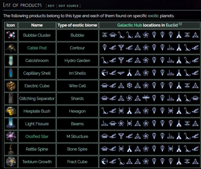 炎热星球:日光茄(植物),仙人掌肉(植物),硫磺(气体),磷(矿物),黄铁矿(荒漠星球矿物),玄武岩(火山星球矿物)