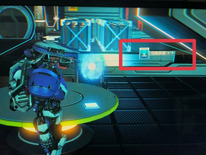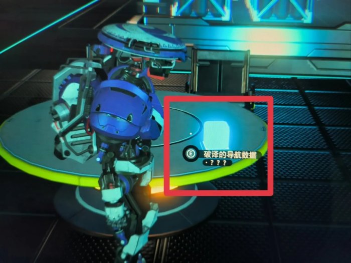 如图,在桌子上会随机刷新出蓝色方块,使用即可获得一个导航数据,不是每一个空间站都有,可以多跑几个。