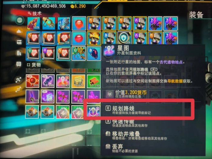 购买之后,上下飞船,进行一次手动存档。随后打开背包使用星图。