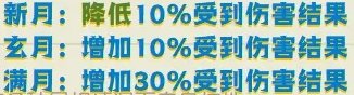 如果按正常的顺续轮替,新月→玄月→满月→玄月→新月,每四个回合一个循环,平均就是增加10%受到的伤害结果,就生存来说,月宫还是偏脆的