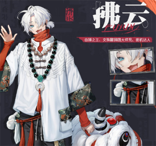 拂云在人物设计上十分讨喜,将街机元素与舞狮文化相结合,颈上戴的一串串圆形珠宝与一袭白将中国传统文化展现的淋漓尽致。身为文殊醒狮团的大师兄,他的口袋中也是装着许多口味的果糖,非常受小孩子的欢迎。他的战斗方式和机制也是十分灵活的,释放特效中也带有舞狮的元素,阳属性的攻击配合技能效果在伤害上并不弱。