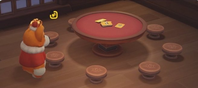 在小屋一楼找到桌面上放有卡牌的桌子,靠近座位后长按F或者RT入座。