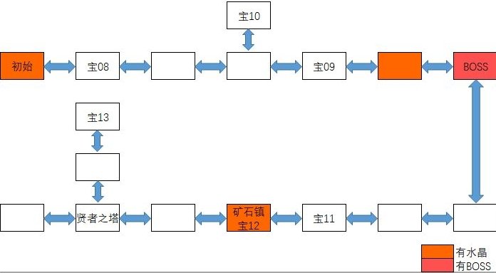 和宝箱10一样,第一次来因为没有嘉隆的魔法无法三段跳跳上去比较困难,等第七章全部结束进入第八章开始的自由时间后用三段跳爬上贤者之塔1楼中间的梯子上,再继续向上爬到3楼,左边地面上有绿色箭头。