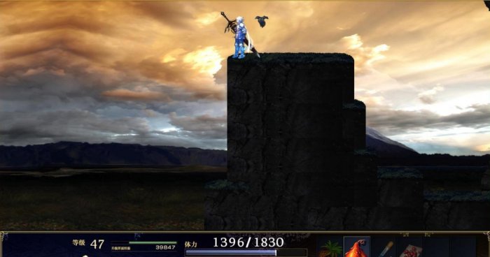 这个重点说一下,建议第八章得到失重奥义并通关第八章进入自由时间后再来,站在小山边缘跳起来使用失重快速向左边跑再街上跳跃应该差不多可以到达平台了,如果不够再利用空步。