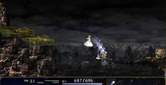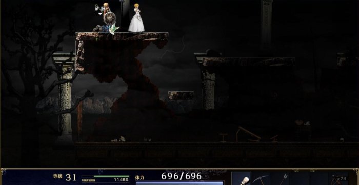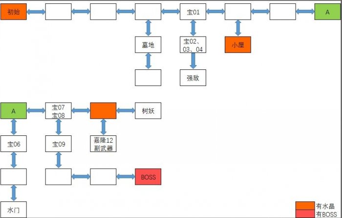 有可以向下走的区域右上方有宝箱,需要站在左边的山上冲刺二段跳。