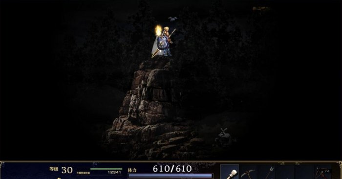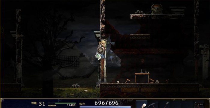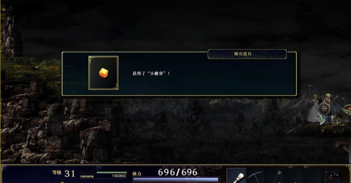 这个宝箱二段跳跳不上去,需要在上面的一个区域给最右边地面的石块炸开跳下来打开。