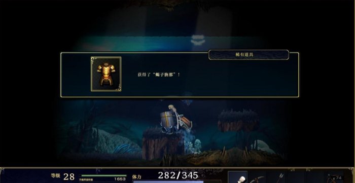 击败像蛇一样的BOSS后一直向左走直到来到教堂里面的房间,右边有个宝箱。