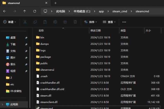 回到steamcmd目录下,可以看到多了很多文件夹和文件