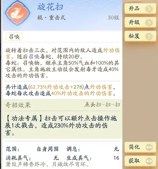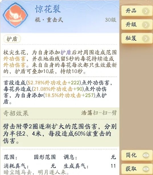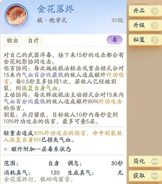 虽然这也是一个劈击招式,还是门派的武学,但毒花不能叠加所以这个技能每10秒放一次即可,不需要太频繁释放。