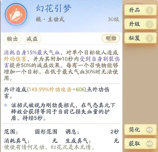 【金花落烬】的主动协同效果配合上CD极短的两个主动技能【幻花引梦】