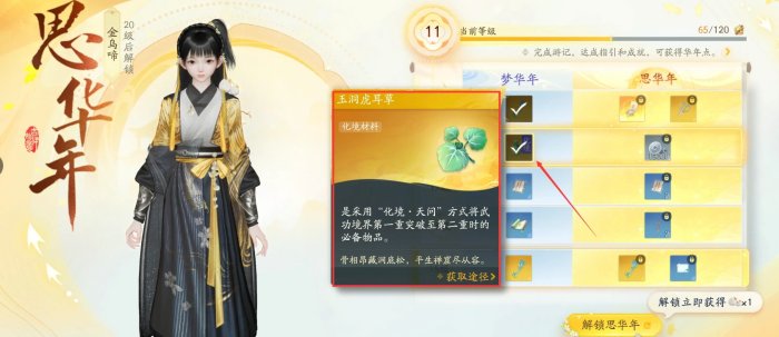6、玉洞虎耳草获取:梦华年等级到达11级(不需要氪金)