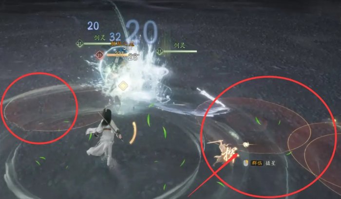 在与狂乱心魔的战斗中注意躲避落下的红圈,被打中会消耗我们大量的心脉凝气