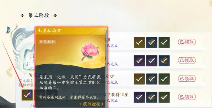5、七星秋海棠获取:梦华年“指引任务”完成潜龙初现第三阶段全部任务即可领取