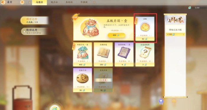1、油酥获取:需要在【易宝-乌蟾居-稀世之珍】中用蟾玉购买(这里不需要氪金)