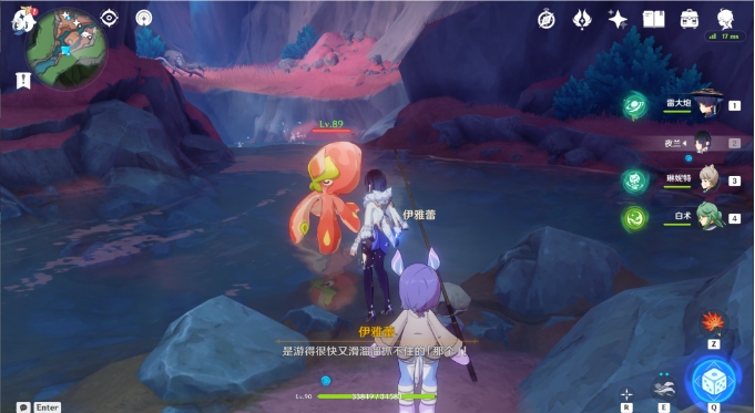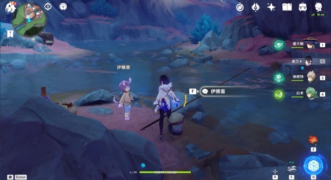 1.与伊雅蕾对话后,在钓竿附近的金色光点处点击交互“撒饵”。