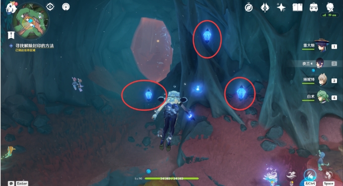 4.寻找解除封印的方法:使用普攻键瞄准攻击接触三个机关。