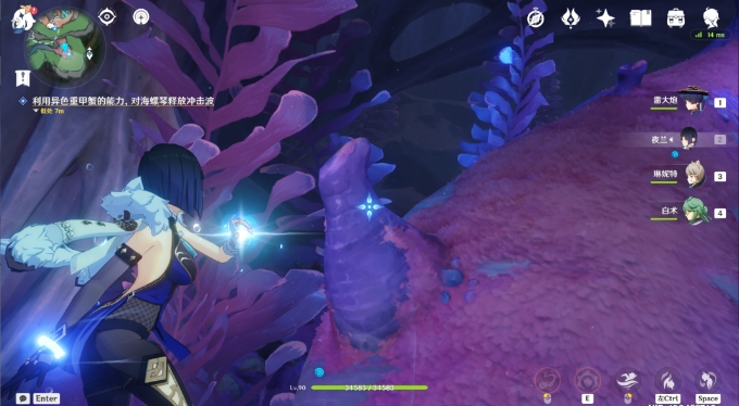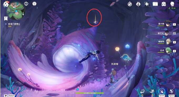 10.利用异色重甲蟹的能力.对海螺琴释放冲击波:靠近一些,用螃蟹的战技打这个凸起部位。