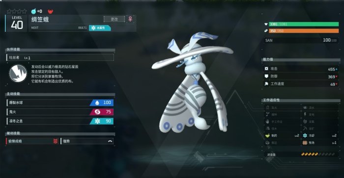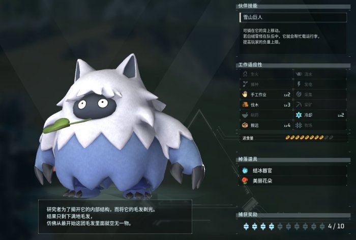这个在雪山刷新的帕鲁有着450点的种族值,应该是通常刷新的非BOSS帕鲁里白值最高的,但是伙伴加掉宝率技能太拉胯。