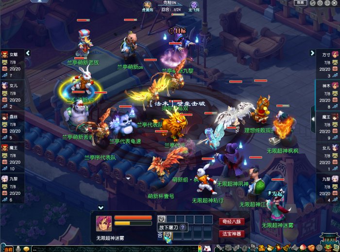 “萌新组”的PK会限定召唤兽的生效技能,所以技能选择很重要。比如,因为有不少队伍的主流输出门派为九黎城、大唐官府或花果山,所以可以配置高血量带高反震的召唤兽,让他们在清宠时承受一定的伤害。不过,也有的队伍会采用“高级鬼魂术”搭配“欣欣向荣”的组合或直接给召唤兽打上高隐身的方式,来提升召唤兽生存能力。