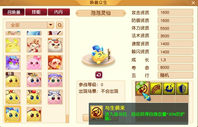 有些队伍还会准备不少“泡泡灵仙”,依靠它们的特殊技能来打优势。比如,杀破狼泡泡灵仙必带的“与生俱来”技能可以在进入战斗时,额外获得自身血量*30%的护盾,具有增强生存能力的作用。
