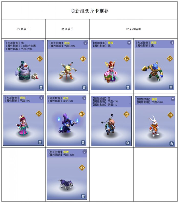 除此之外,由于49级的变化之术等级较低,各位少侠根据以上分析及自身需求来增加属性和特点能力,所以变身卡的选择也很重要。