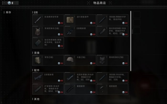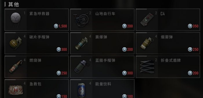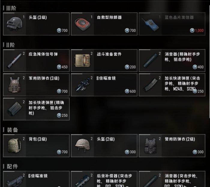 其他配件如倍镜、枪口、弹匣和应急掩体信号弹都贵了50BR币,紧急呼救器贵了500BR币为1500BR币。