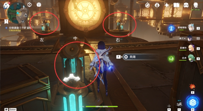 3.首先我们关闭左/中扩音机,只留中间的开着:得到下面这句话