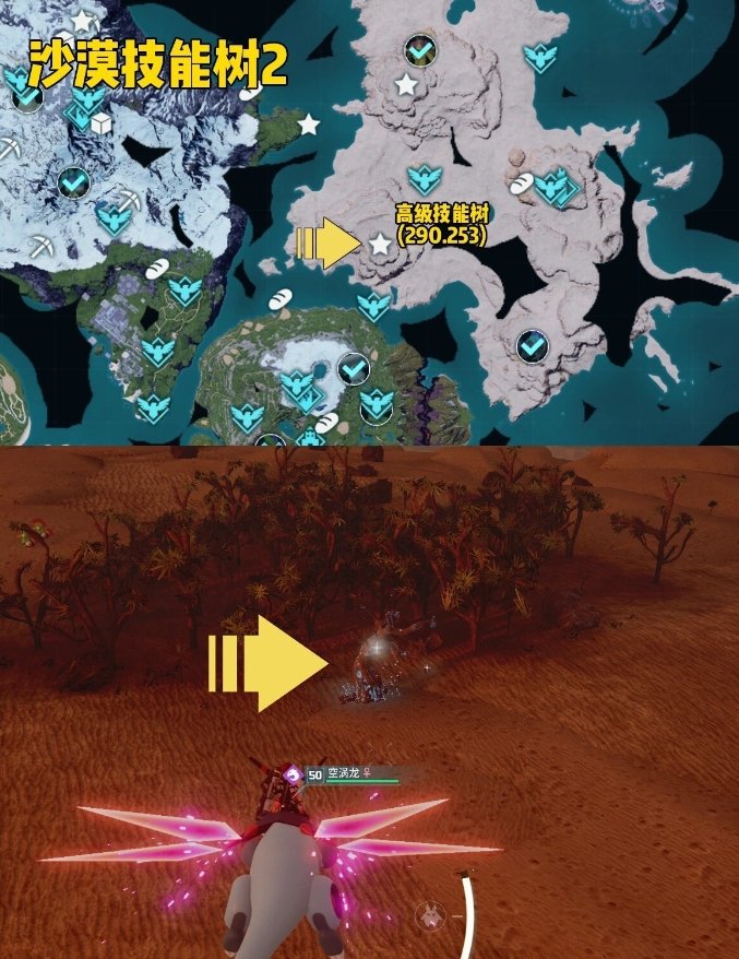 沙漠里的这棵技能书周围可能会有很多炸弹鸟,摘取的时候小心被他们自爆炸飞到天上,不要问我怎么知道的,问就是试过!