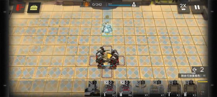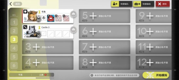 开局部署号角↓之后等到最后一个怪。全程毫无难度,对面根本打不动基地。怕打不过的多带10个干员容错就行了。