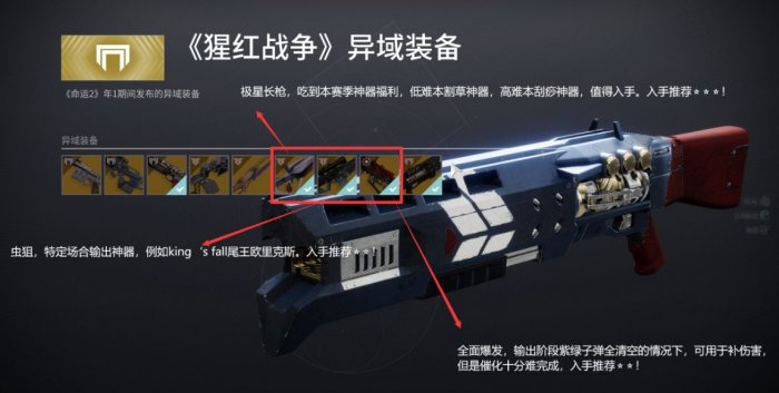 日落武器:电波形(忘记叫啥了,™的还没维护好),perk选择:双高速+金中/爆破+伏特,大师弹头/操控。典狱长的规则(配合猎人幸运裤用,perk选择:事不过四+斩首武器)。