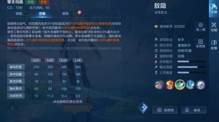 敖隐可能是迄今为止唯一一个拥有五技能的射手了(算被动技能)。当然,多了一个技能,可操作空间就更大了,那么下面我们来看一下敖隐的这五个技能