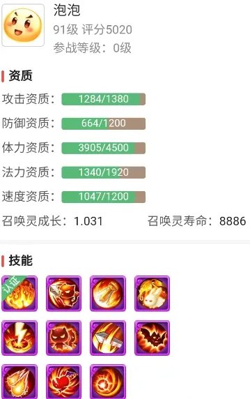 十一技能四吸收泡泡:这绝对是心目中的泡泡的样子,美中不足的就是成长太低,还有就是技能没有全红,这只宝宝打全红成本应该不高。