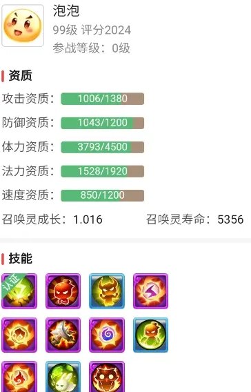 如果按照初始技能和初始属性来说的话,泡泡弊端是非常明显的,成长低再加上技能格子少,只能作为过渡宝宝用,不能长久的使用,最多就是在等级高了之后打造成配速的血宠来使用。