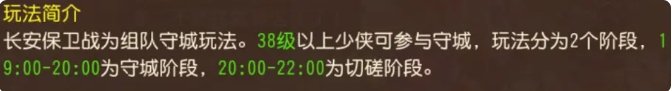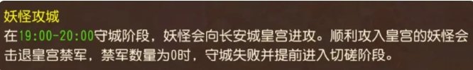 守城阶段时间为19:00-20:00,从19:00开始,长安城将会有怪物从地图的三个方向攻城,长安城地图也会进入攻城地图。