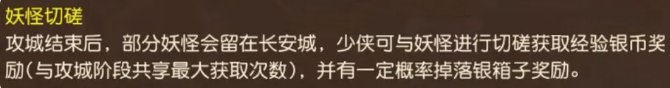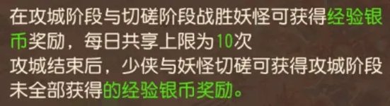 攻城结束后,少侠与妖怪切磋可获得攻城阶段未全部获得的经验银币奖励