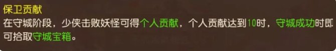 (1)在怪物攻城(守城)阶段,击杀任何怪物都可以获得个人贡献,个人贡献达到10后,守城成功即可获得守城宝箱。