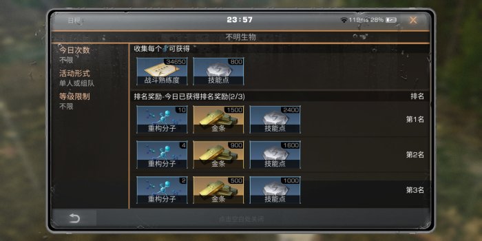 小芝士:整备列车伤害榜前三名拿到的额外奖励都是地图不明生物伤害第一的奖励