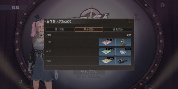 生存答人答题积分到250获得,生存答人在下午1点、4点、7点、10点各进行一次,每人每天只能参加一次
