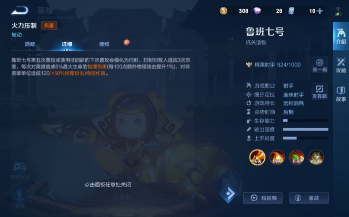 鲁班七号是无位移英雄,相比其他射手来说,鲁班七号生存能力是比较低的。鲁班打伤害基本上靠被动,因为触发条件很常见,所以说鲁班打坦克不算很吃力,前提你得发育的好。