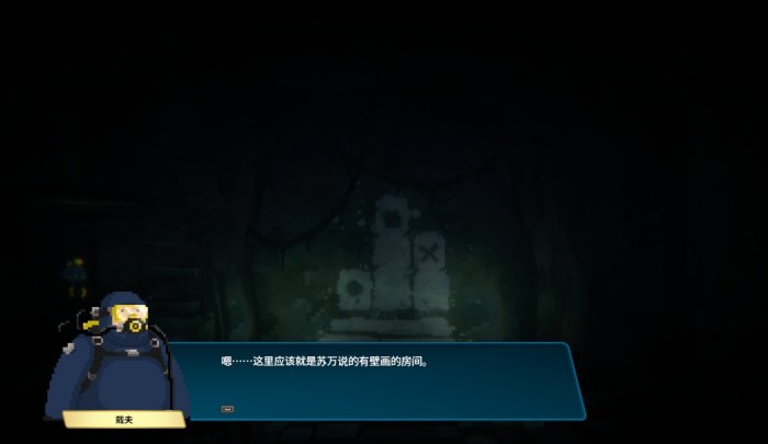 找到有壁画的地方,进入场所后,往左侧游,会触发一个动画,此时往下方洞口游,直到触底,触底后往右方游,到达壁画周围会触发交互剧情