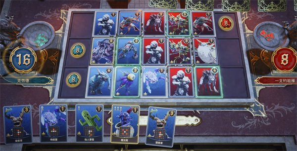 开局如果抽到高等级卡牌可以放回去重新抽,确保前期能放下卡牌保证不太劣势,选择卡牌的时候也要注意卡牌的占地和技能作用范围。