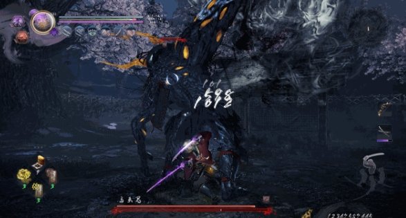 妖反:短暂变身妖怪进行反击,若对敌人的红光攻击应对成功则有大量正面效果。使用妖反需要消耗一点妖力(绿条下面的紫条),妖反成功回复大量妖力,妖力可以通过攻击命中敌人和使用道具,捡起魂核获得。