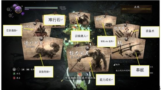 奉献:①交出多余的武器装备换取仙药(血瓶)和精华