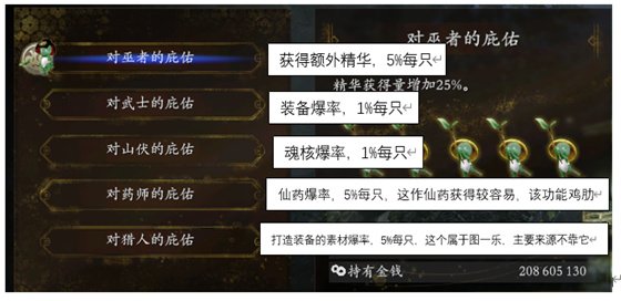 ③在地图中收集木灵可以获得加成,不同种类的木灵加成不同。每五只任意木灵可以让你的初始仙药数量+1。上限+5