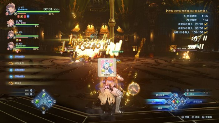最后讲讲运动会(boss狂暴)的时候怎么蹭伤害,奶刀远距离输出的方法主要有两个,红刀蓄力与红刀收招,使用三连闪避加速蓄力蹭boss然后对准boss释放红刀收招(蓝刀冲击波),这一刀冲击波打中之后会对boss进行多次斩击,伤害可观