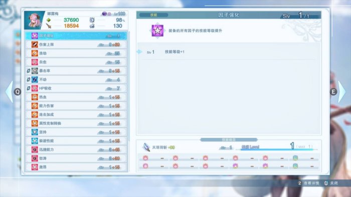 (伤害上限,属克,暴击率,药水携带数,豪胆基本上所有角色必带,不过赘述)