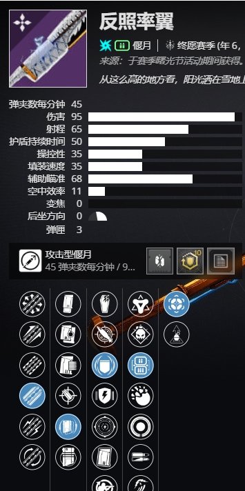 反照率翼(曙光节偃月,现暂时无法获取,有下文推荐的最佳perk组合)