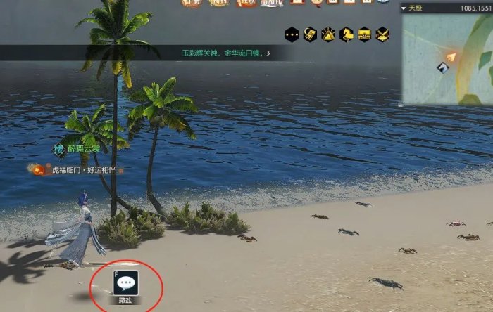 天极岛【赶海寻贝】,可从观海坪岛内传送何坦传到海滩(1085.1551、1581.1115附近都有)